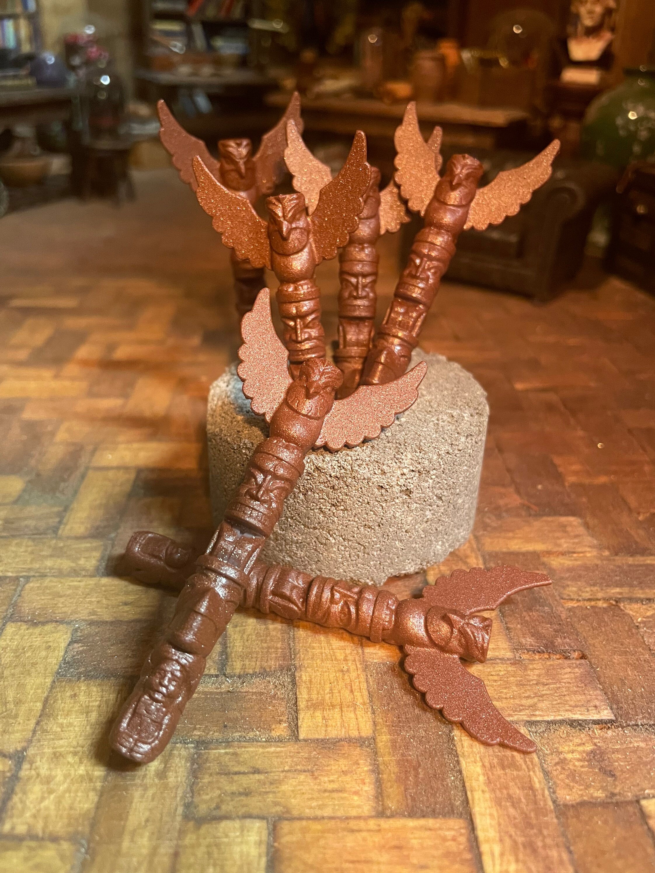 Time for some cocktails at traders or digging up the ruins of a mysterious island these miniature totem poles will add a sense of wonder to any scene!