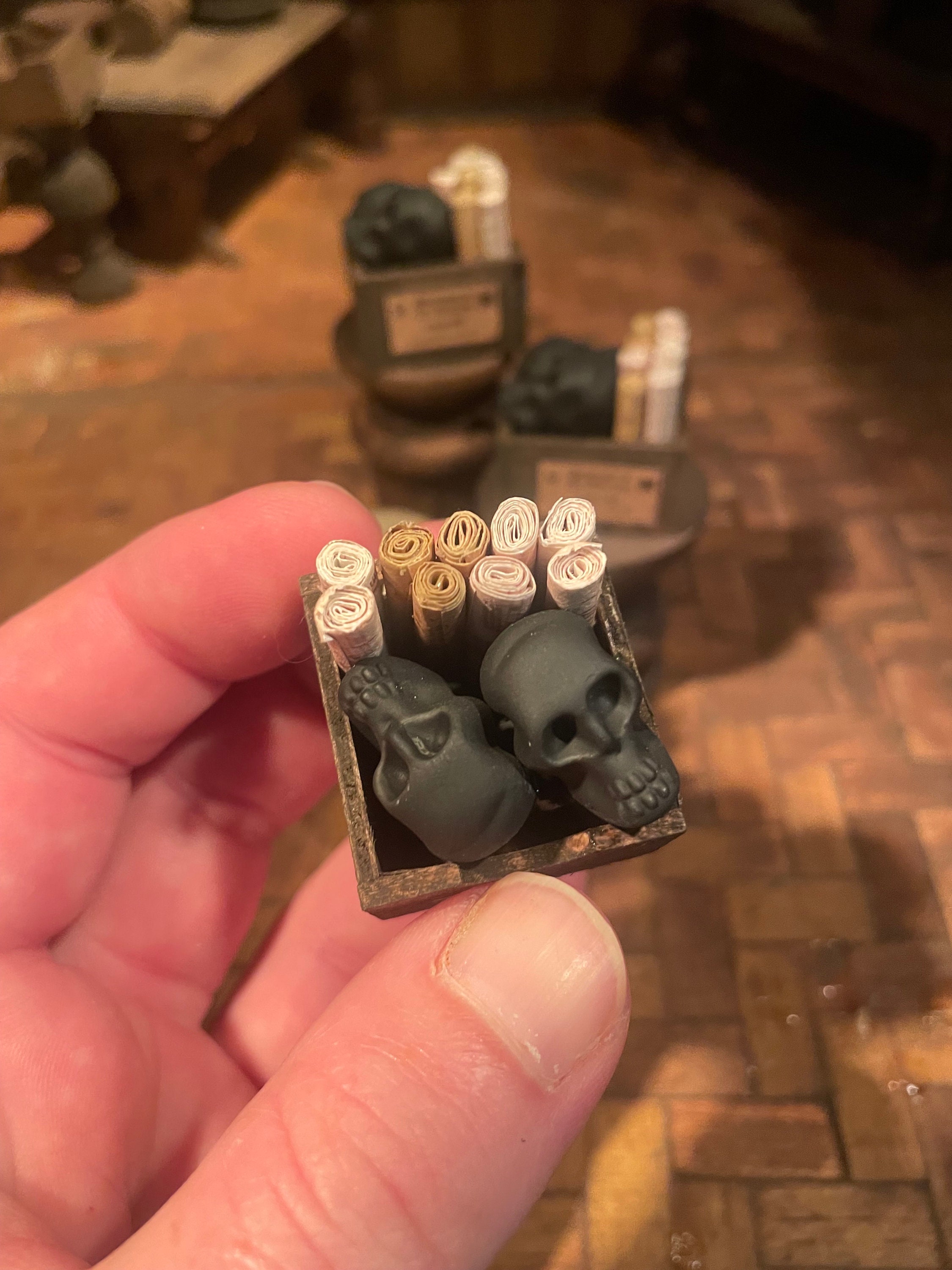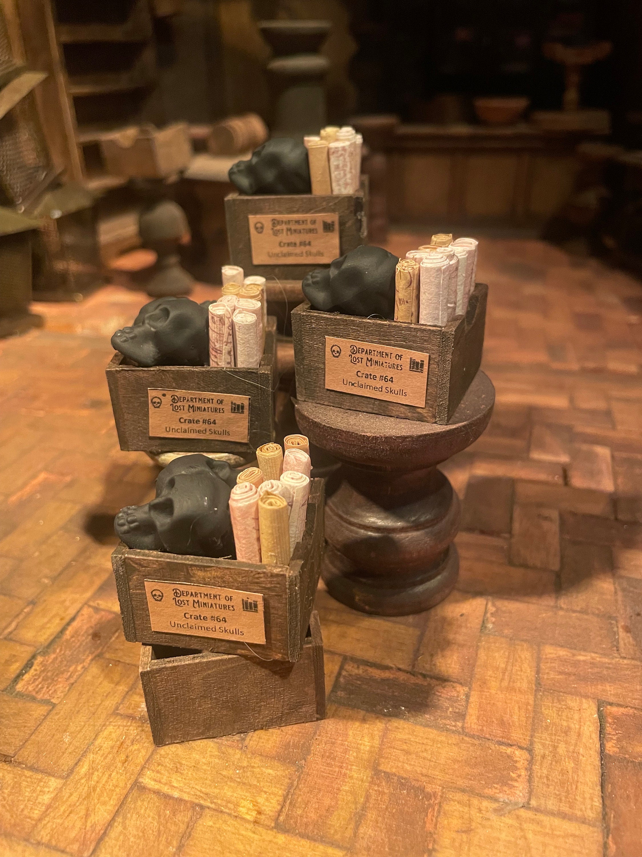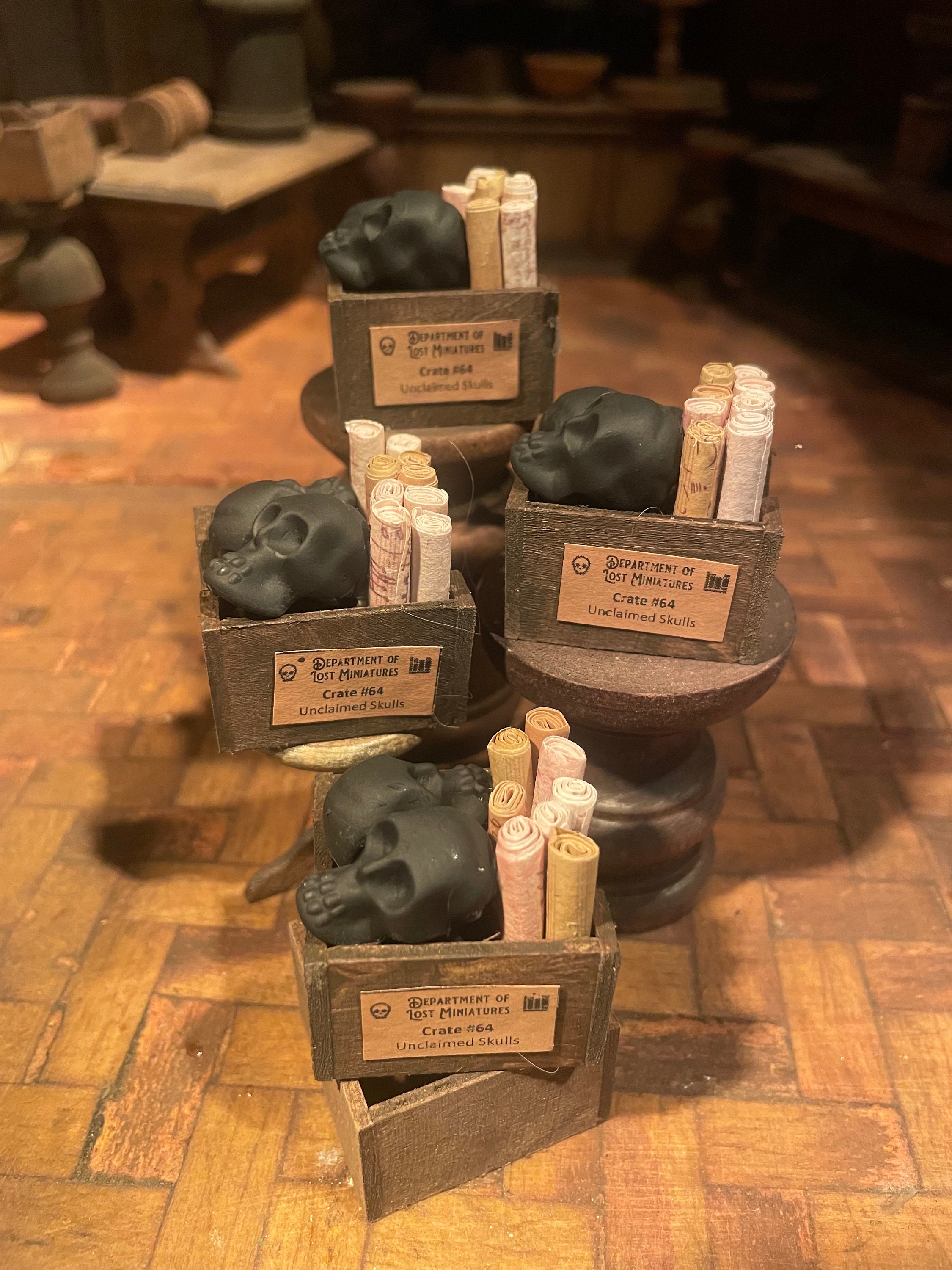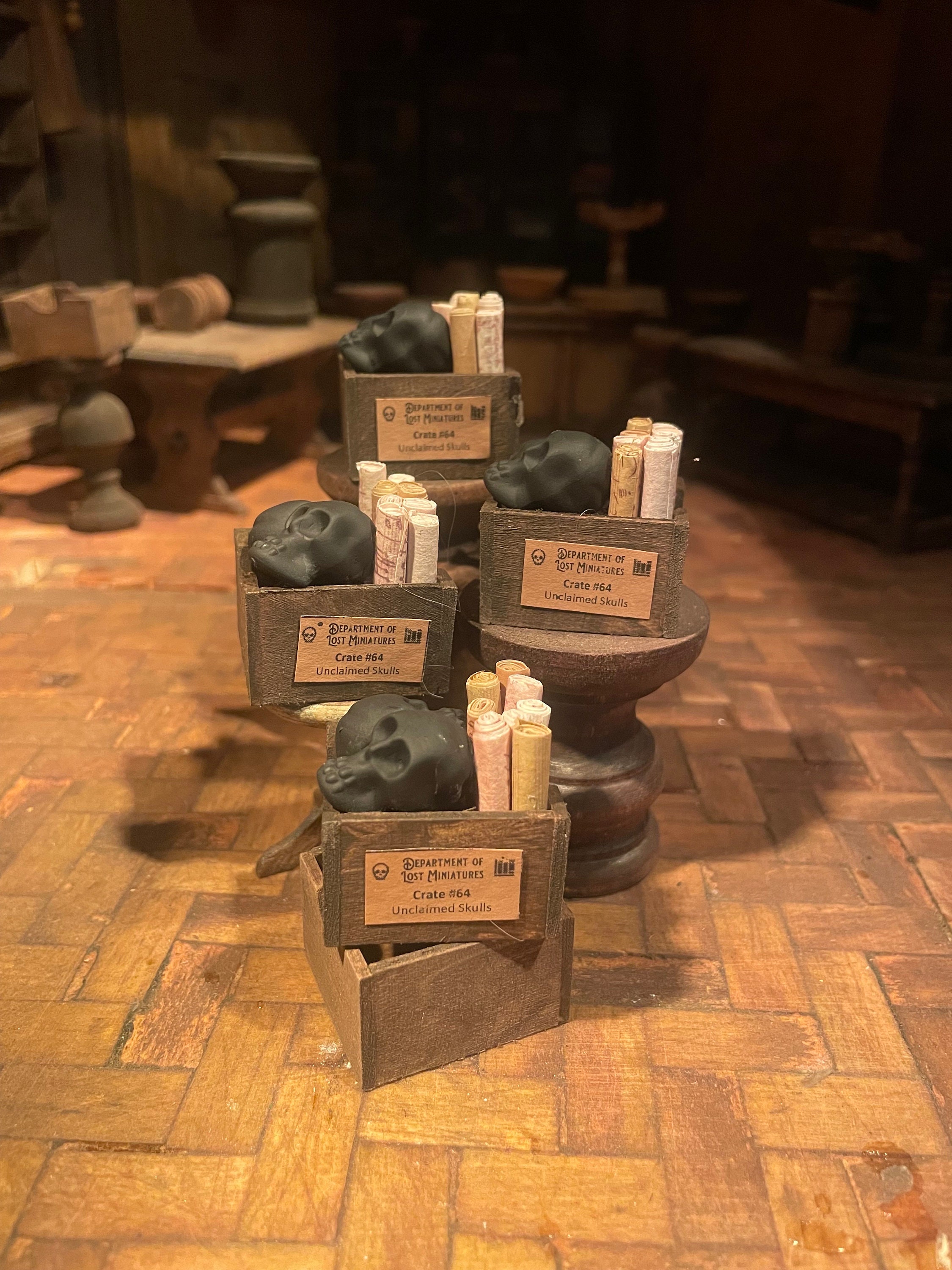 This is an update to the original design and now includes a bundle of miniature scrolls along with the mysterious skulls include the crate.