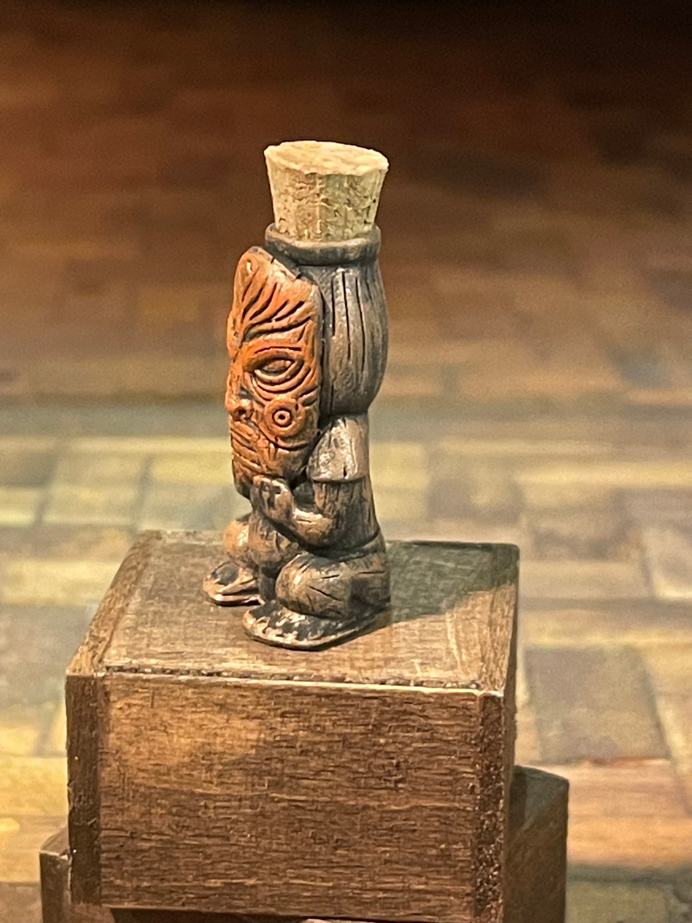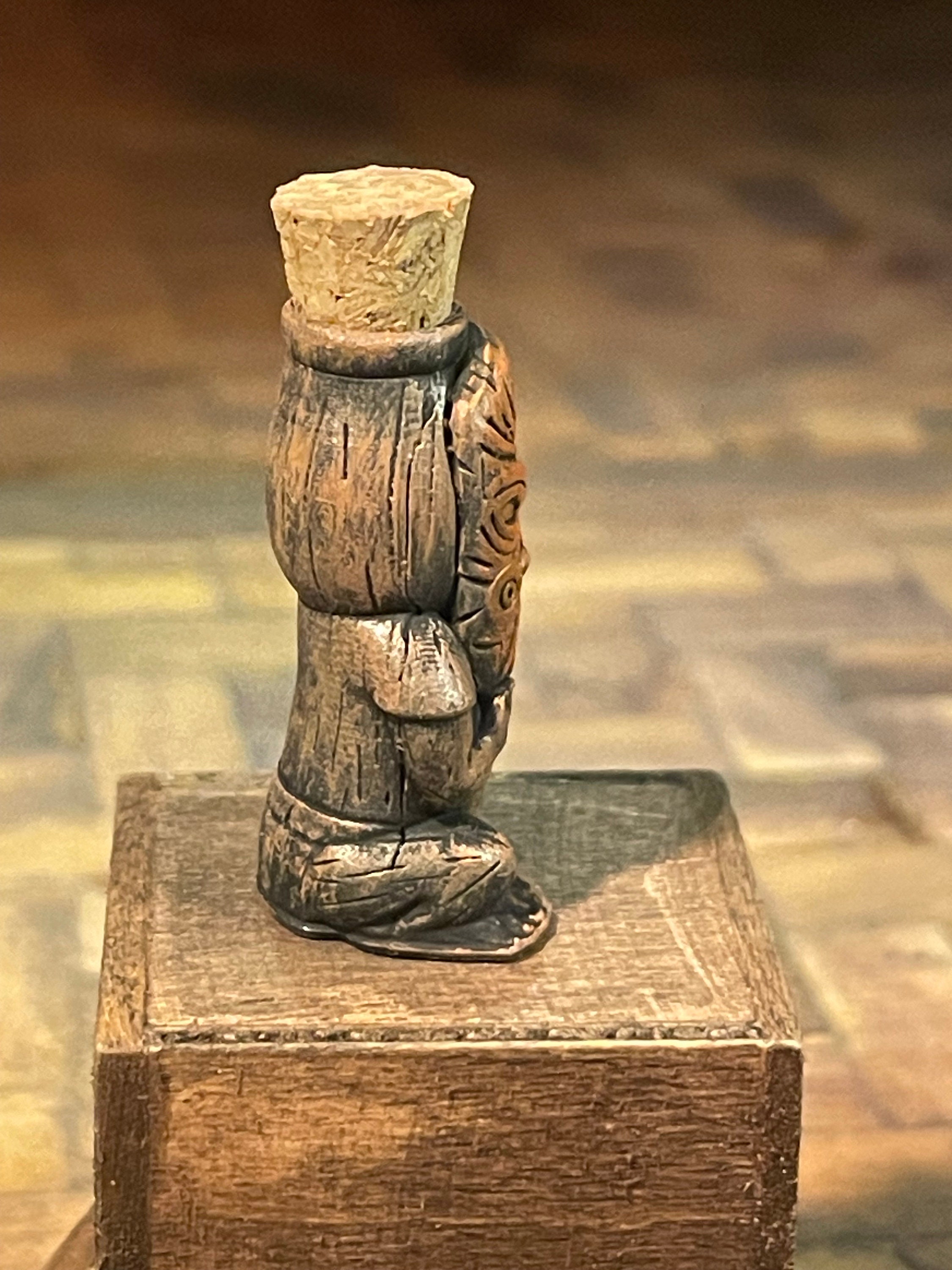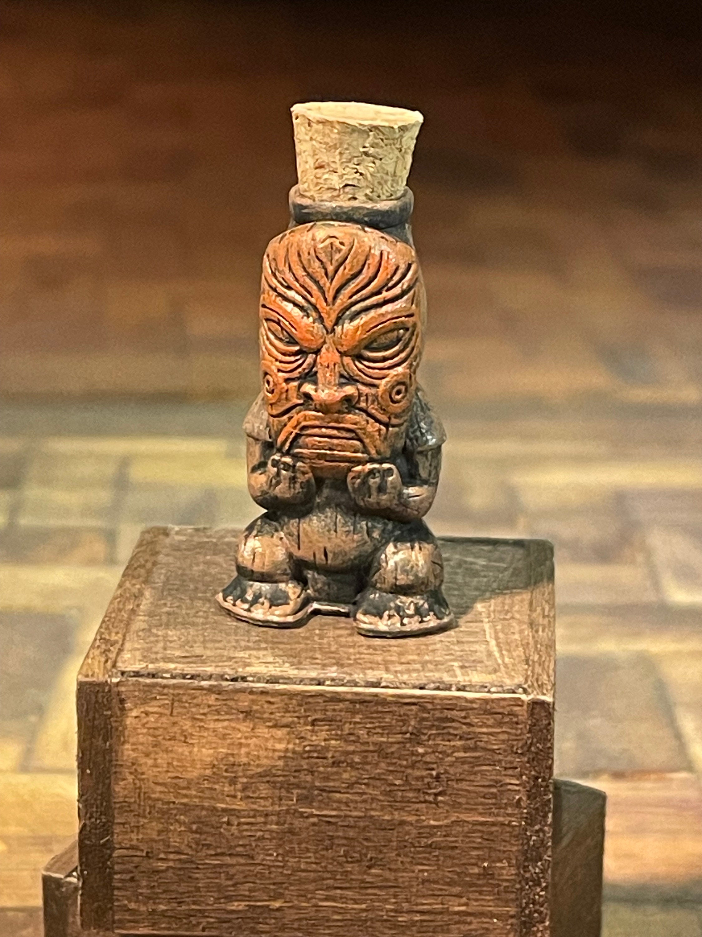 The masked Tiki Man stands approximately 3.2cm tall with unknown content the bottle is capped with a traditional cork.