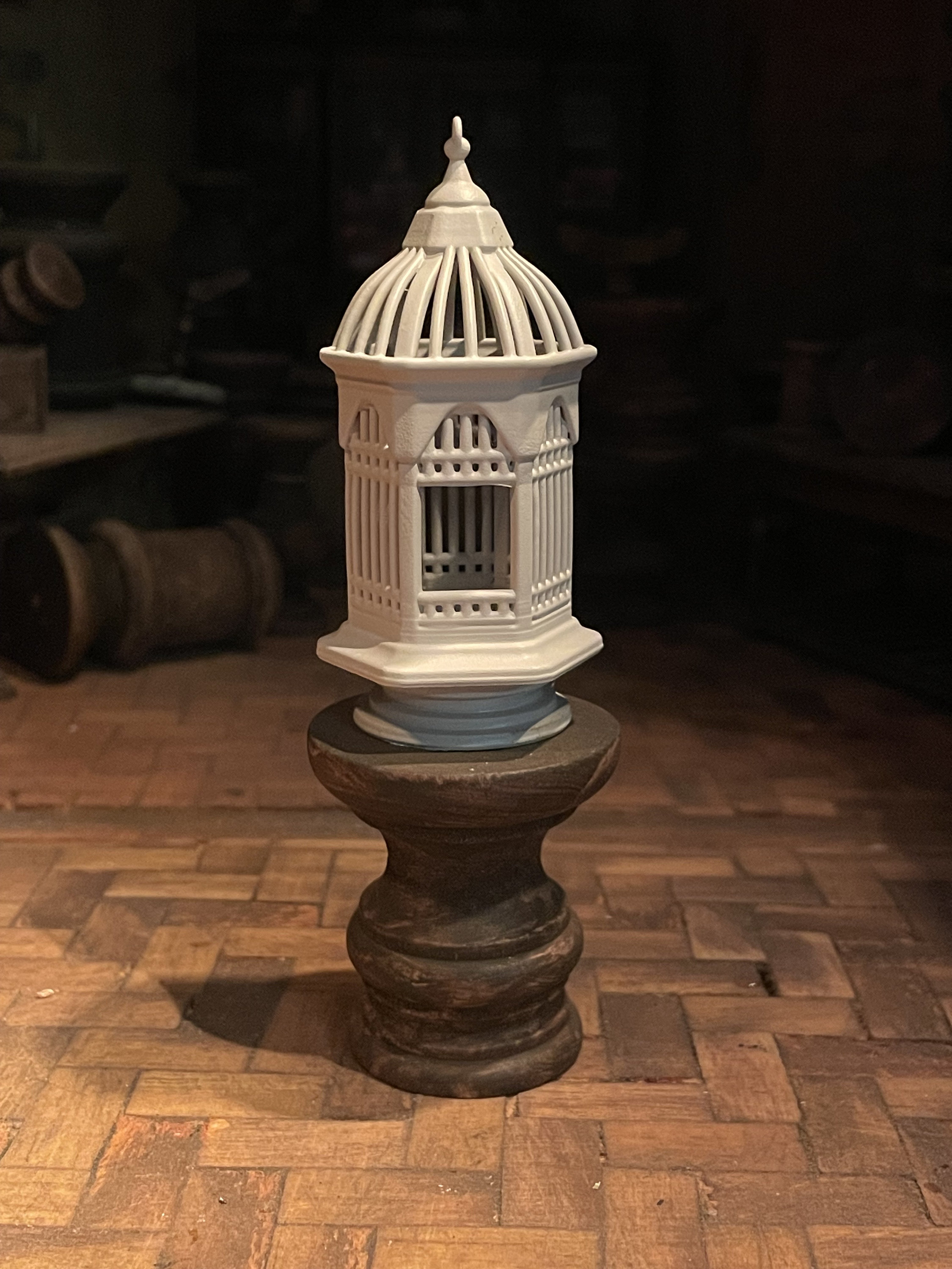 Inspired by the archways of Morocco and Turkey these elegant bird cages stand 7cm tall and on top a solid base which fits perfectly on the perfectly turned wooden pedestal.