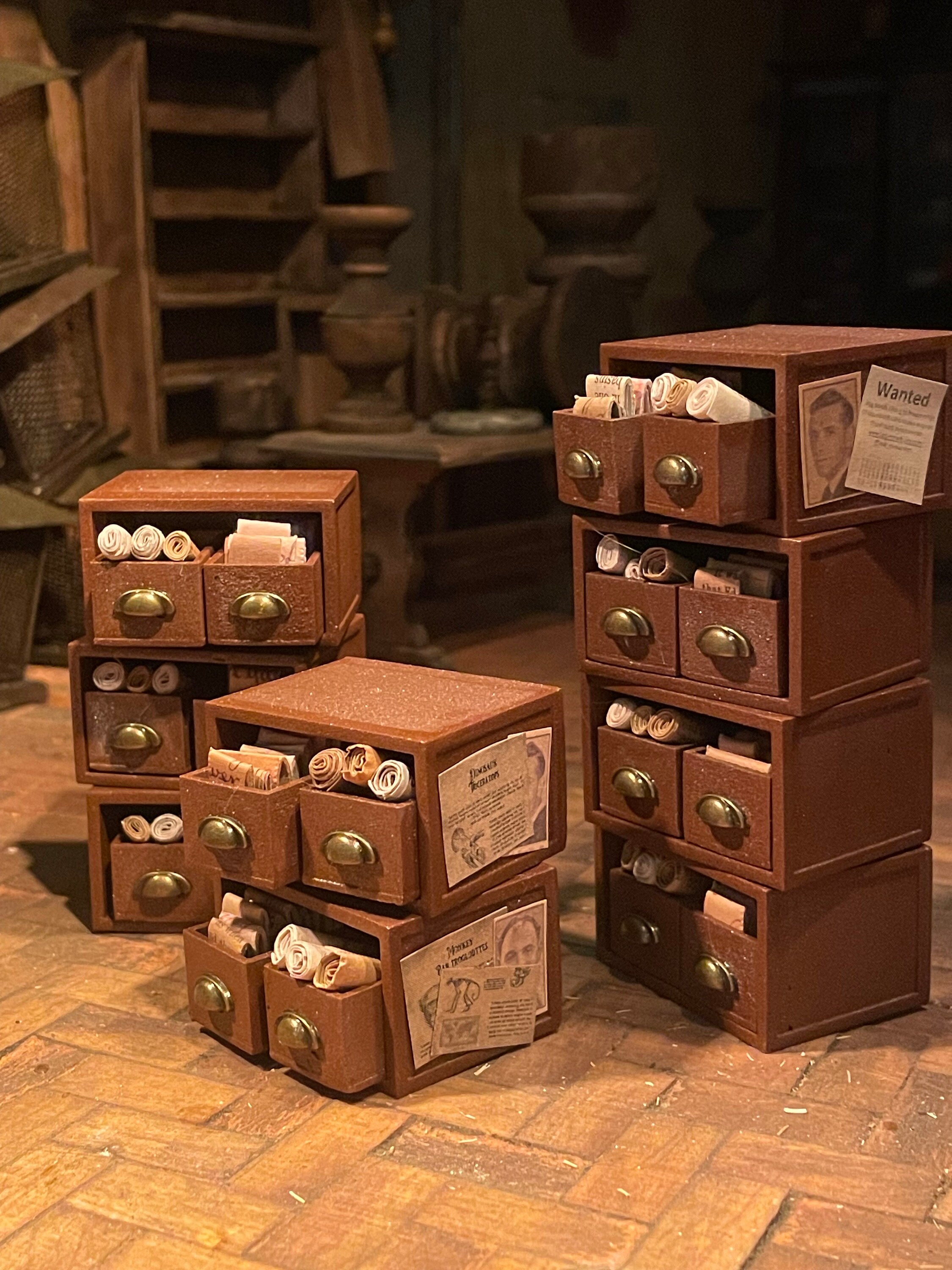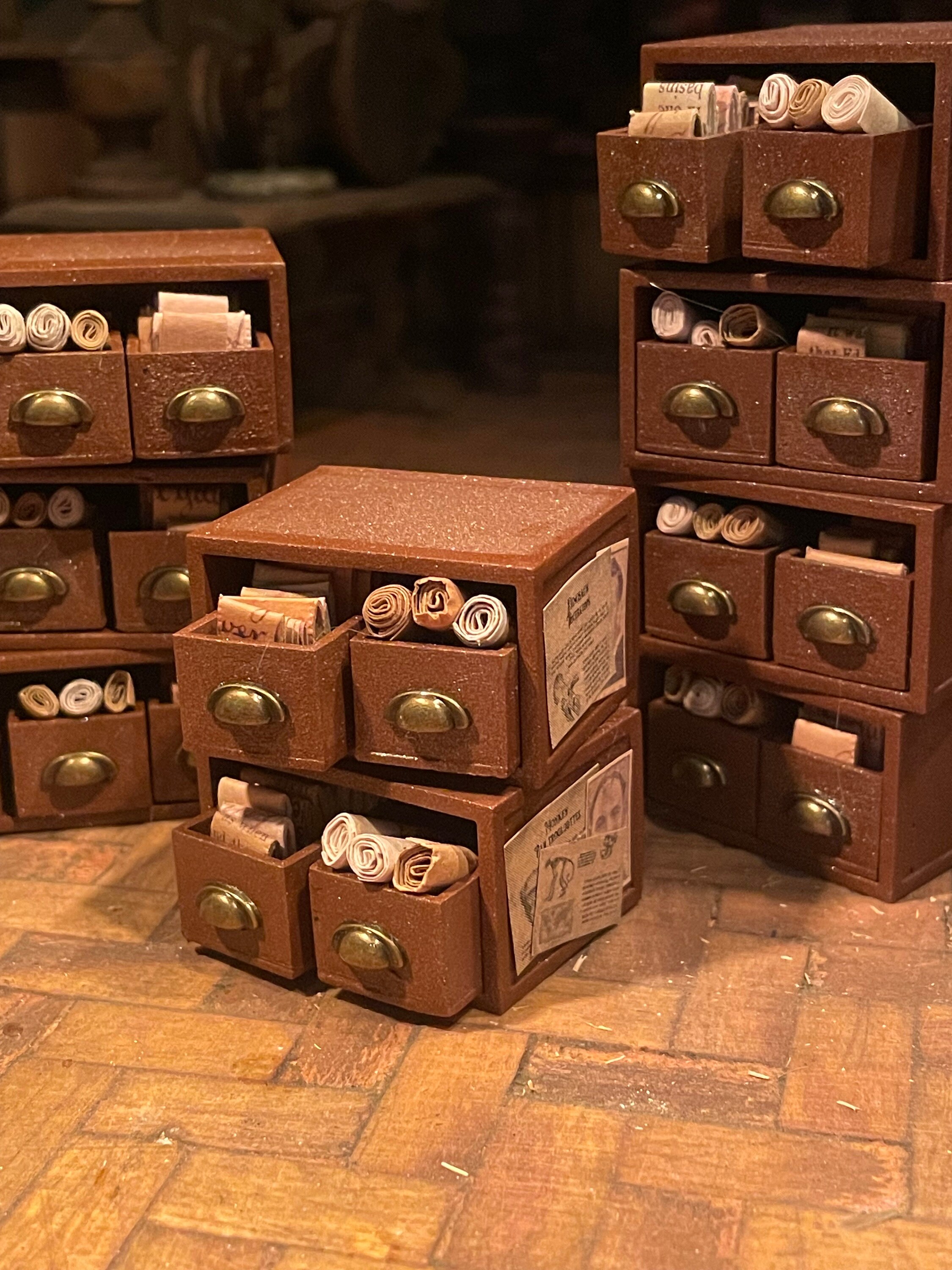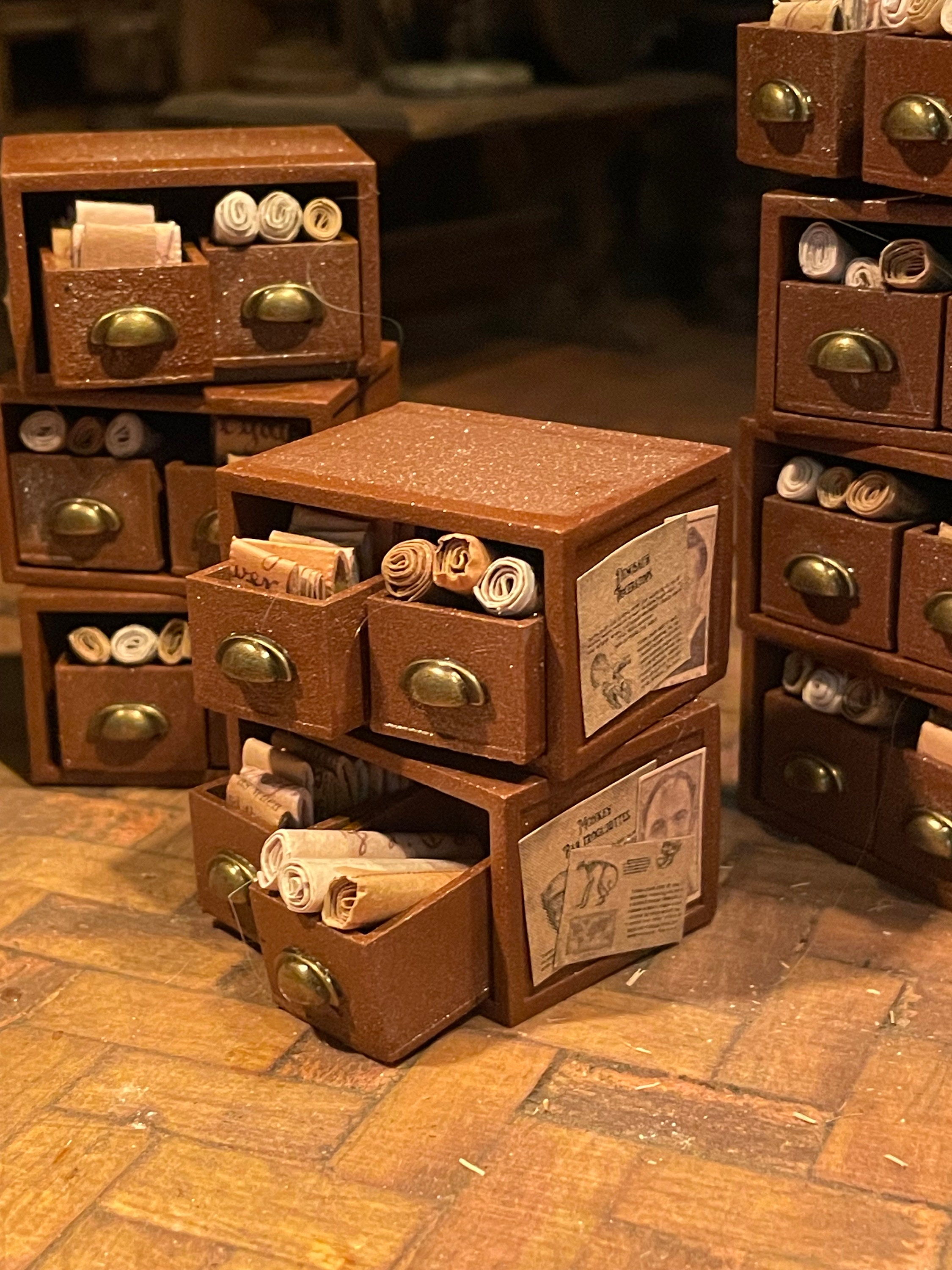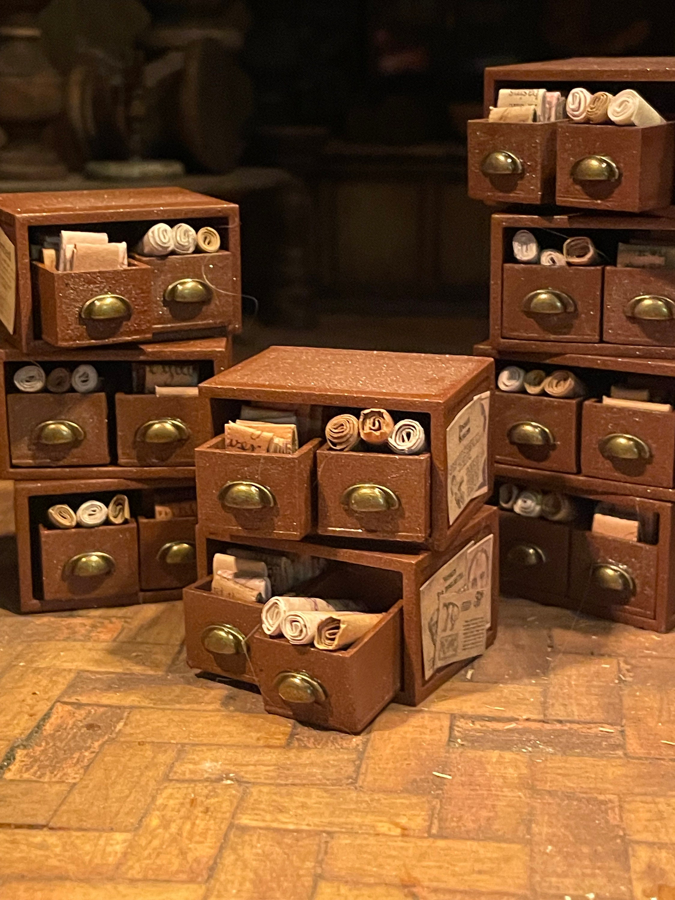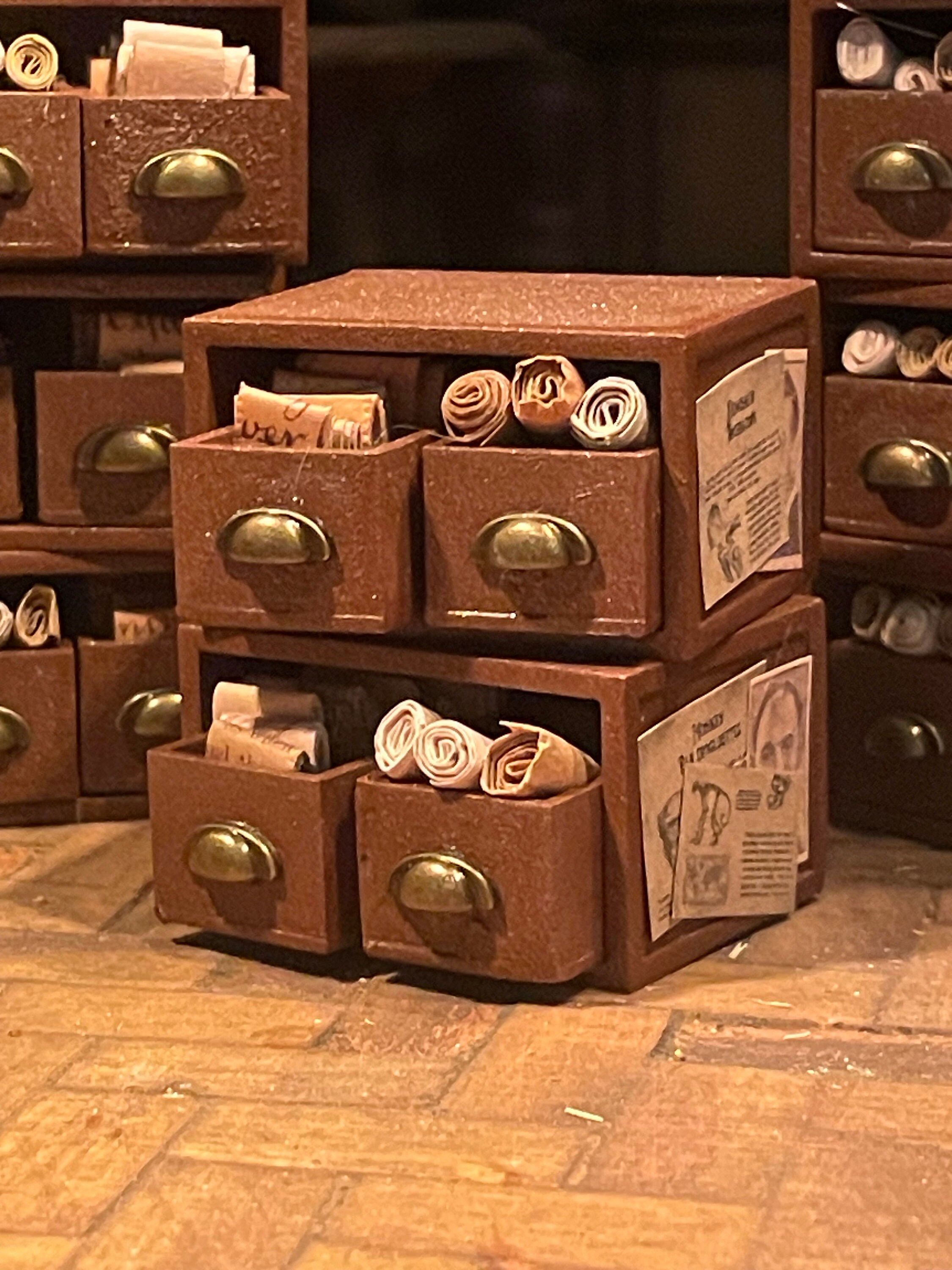 Drawers are filled with scrolls and parchments and they can be removed from the main unit.