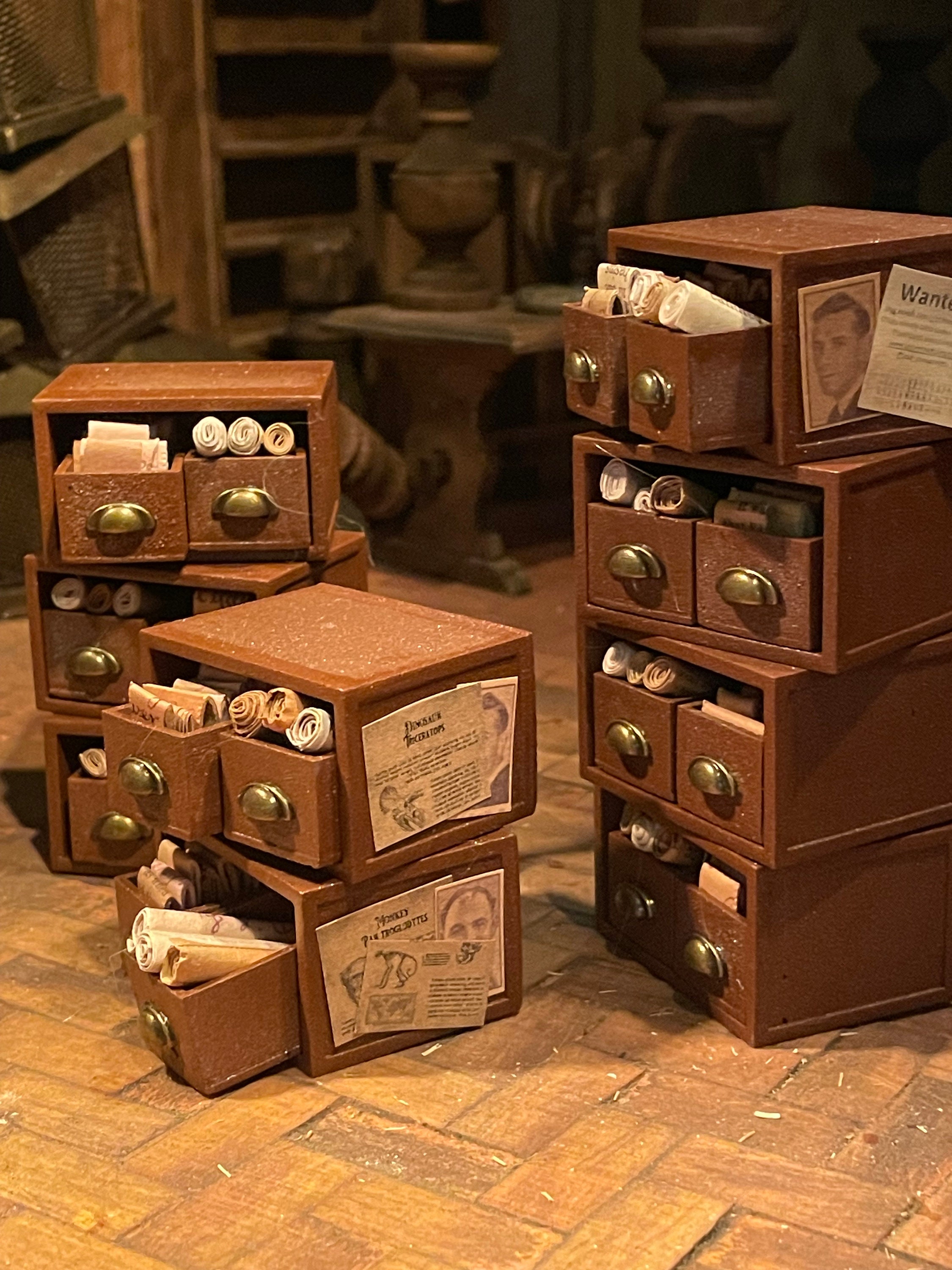 These double drawer Archives are common across the Department of Lost Miniatures - made strong and sturdy and regularly covered in research papers, posters and memos.