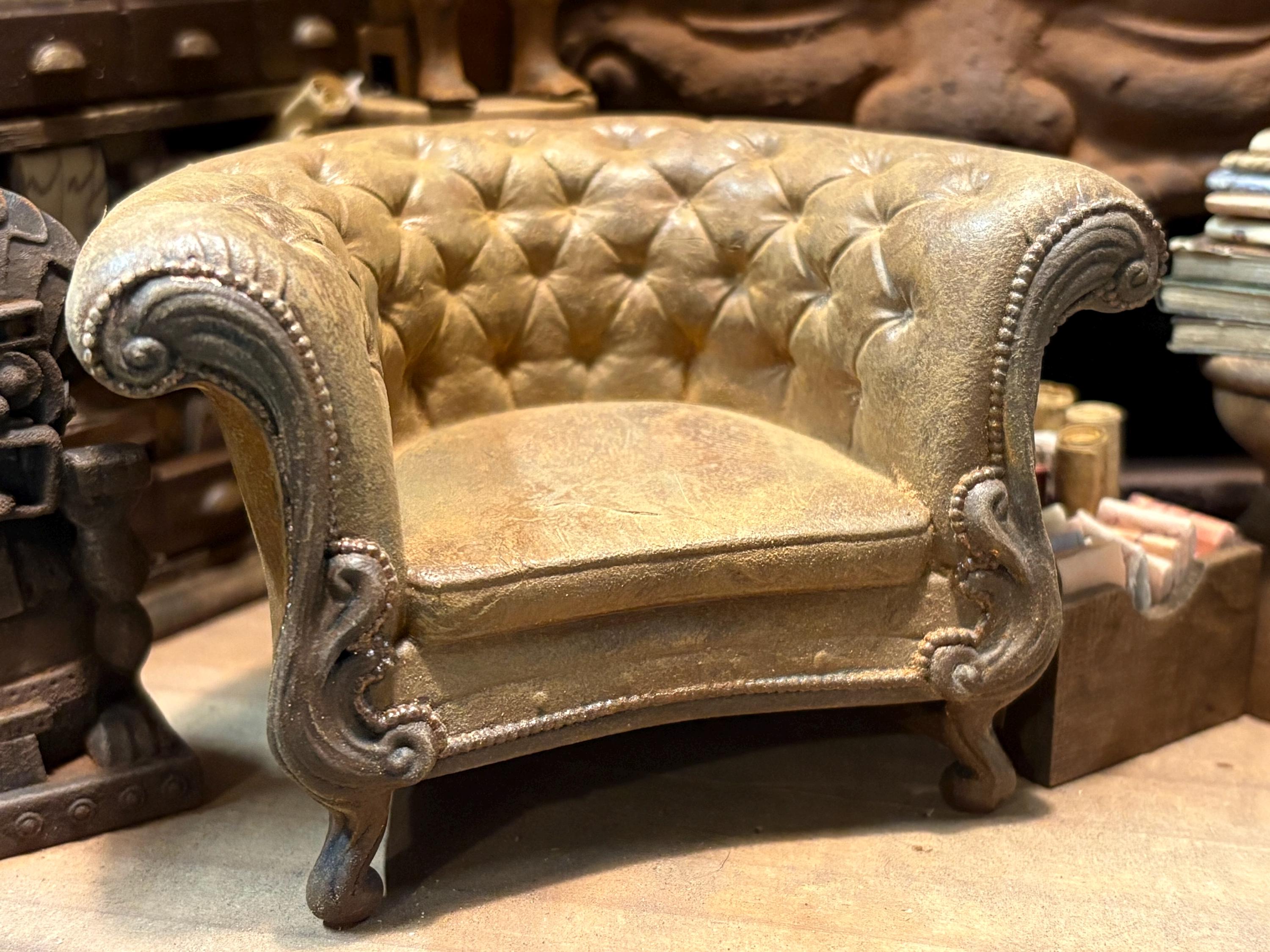 Made from resin, layers of paint have been added over several days to achieve a leather look and style.